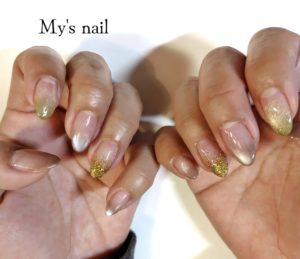 本日のデザインはグレージュとゴールドマグネットとホワイトラメ等々色々MIXです✨