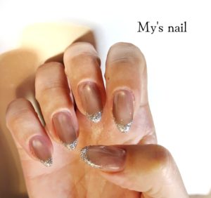 本日のデザインはマグネットネイルにシルバーラメで変形フレンチ✨