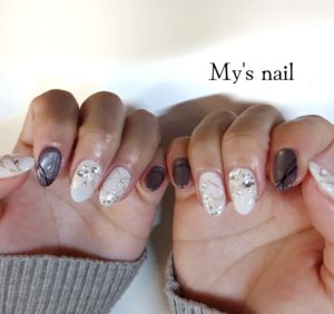 本日のデザインはグレージュカラーマグネットにシルバーラメを後のせ。