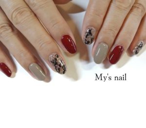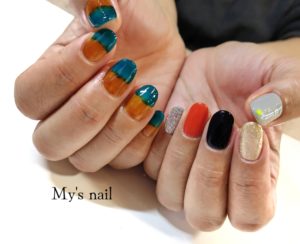 本日のデザインは秋色カラー3色にラメの上にはブラックホイルをペタペタ✨
